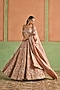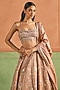 Featuring a dusty pink lehenga in silk base with sequins, thread, cording and zari hand embellishments. It is paired with a blouse and brocade dupatta. Accentuate it with kundan polki or zircon jewellery, embellished heels and a potli bag for festive occasions, wedding or sangeet ceremony.