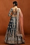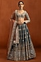 Featuring a dusty teal lehenga in silk base with sequins, zari and thread embroidery. It is paired with an embroidered blouse and a net dupatta. Accentuate it with zircon or kundan jewellery, a sleek low bun and block heels for a complete ensemble, ideal for wedding, engagement or sangeet celebrations.