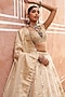 Featuring a gold lehenga in viscose tissue base with zari, beadwork and sequins embroidery. It is paired with a blouse and a dupatta. Accentuate it with statement jewellery, low bun and heels for a wedding, sangeet or engagement ceremony.