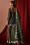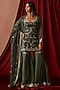 Featuring a green kurta in tissue base with cord, sequins and zari embroidery. It is paired with gharara pants and a dupatta. Accentuate it with statement earrings, a sleek braid and metallic heels, perfect for EID or festive occasions.