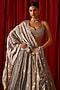 Featuring a grey lehenga in tissue base with cord,sequins and zari embroidery. It is paired with a blouse and a tissue dupatta. Accentuate it with zircon jewellery, a polti bag and block heels for a wedding, sangeet or engagement ceremony.