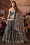 Featuring a grey lehenga in velvet base with zari and thread hand embellishments. It is paired with a kurta style top and a net dupatta. Accentuate with statement earrings and heels for a wedding, engagement or sangeet ceremony.