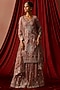 Featuring a lavender kurta in tissue base with cord, sequins and zari embroidery. It is paired with sharara pants and an embroidered dupatta. Accentuate it with statement earrings, a sleek braid and metallic heels, perfect for EID or festive occasions.