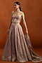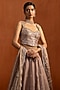 Featuring a light mauve lehenga in satin base with sequins, zari, beads and thread embroidery. It is paired with an embroidered blouse and a satin dupatta. Accentuate it with zircon or kundan jewellery, a sleek low bun and block heels for a complete ensemble, ideal for wedding, engagement or sangeet celebrations.