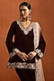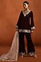 Featuring a maroon short kurta in velvet base with zari, sequins, thread and beads embroidery. It is paired with palazzo pants and a tissue dupatta. Accentuate it with statement earrings, a sleek braid, and metallic heels, ideal for festive occasion or sangeet ceremony.
