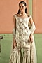 Featuring a mint top in viscose tissue base with zari, thread, bead and sequins embroidery. It is paired with gharara pants and net dupatta. Accentuate it with kundan polki or zircon jewellery, embellished heels and a potli bag for festive occasions, wedding or sangeet ceremony.