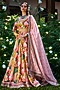Featuring a multi-colored lehenga in silk base with floral print and lace work. It is paired with a matching blouse and an organza dupatta.