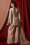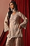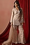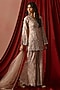Featuring a nude pink kurta in silk base with beads, sequins and zari embroidery. It is paired with salwar pants and a net embroidered dupatta. Accentuate it with statement earrings, a sleek braid and metallic heels, perfect for festive occasions or sangeet ceremony.