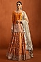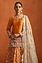 Featuring an orange lehenga in silk base with zari, sequins and thread embroidery It is paired with an embroidered kurta and an organza dupatta. Accentuate it with zircon or kundan jewellery, a sleek low bun and block heels for a complete ensemble, ideal for wedding, engagement or sangeet celebrations.