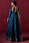 Lashkaraa presents a peacock blue anarkali in silk base with zari, sequins and thread embroidery. It is paired with shantoon pants and a net dupatta. Accentuate it with statement earrings and heels for any festive occasion or sangeet ceremony.