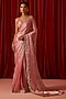 Featuring a pink saree in tissue base with thread, sequins and zari embroidery. It is paired with an embroidered blouse. Accentuate it with zircon jewellery, a sleek bun and block heels, perfect for festive occasions, wedding or sangeet ceremony.