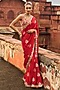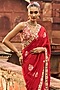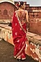 Featuring a red pre-draped saree in brocade base with handwork, stone, zari and thread embroidery. It is paired with a satin blouse. Perfect for a wedding or engagement ceremony.
