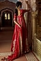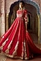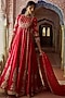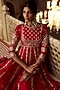 Featuring a red anarkali in silk base with thread and sequins embroidery. It is paired with pants and a brocade dupatta. Accentuate it with dangler kundan earrings and heels for festive gatherings, wedding or engagement ceremony.