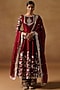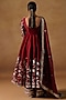Lashkaraa presents a red anarkali in tissue organza base with thread, sequins and zari hand embroidery. It is paired with palazzo pants and a dupatta. Accentuate it with statement earrings and heels for any festive occasion.