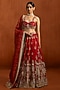 Red Viscose Tissue Zari Hand Embellished Lehenga Set