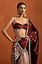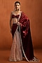 Featuring a red saree in viscose velvet base with zari, sequins and thread embroidery. It is paired with a satin embroidered blouse. Accentuate it with zircon earrings, a sleek bun, and metallic heels, ideal for a wedding, engagement or sangeet ceremony.