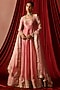 Featuring a rose pink anarkali in satin base with thread, sequins and zari embroidery. It is paired with pants and a satin embroidered dupatta. Accentuate it with statement earrings, a sleek braid and metallic heels, perfect for festive occasions or sangeet ceremony.