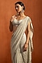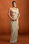 Featuring a sage green saree in silk base with zari, sequins, beads and thread embroidery. It is paired with an embroidered blouse. Accentuate it with zircon earrings, a sleek bun, and metallic heels, ideal for a wedding, engagement or sangeet ceremony.