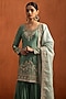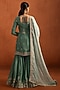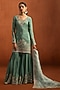 Featuring a sea green kurta in viscose silk base with zari, sequins and thread embroidery. It is paired with gharara pants and an organza dupatta. Accentuate it with statement earrings, a sleek braid, and metallic heels, ideal for festive occasion, mehendi or sangeet ceremony.