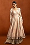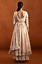 Featuring a soft pink anarkali in lampi base with zari, sequins, mirror and thread hand embellishments. It is paired with sharara pants and a tissue silk dupatta. Accentuate it with statement earrings, a sleek braid, and metallic heels, perfect for Eid and festive occasions.
