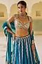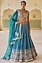 Teal Blue Silk Zari Embroidered Lehenga Set