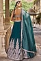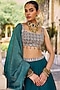 Featuring a teal green lehenga in silk base with mirror work, zari and sequins embroidery. It is paired with a blouse and a silk dupatta. Accentuate it with zircon jewellery and heels, a potli for a wedding, sangeet or engagement ceremony.