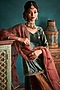 Featuring a teal kurta in velvet base with kashmiri motifs, dabka, and tilla work. It is paired with matching double toned sharara pants and a dupatta.