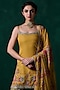 Lashkaraa presents a yellow kurta in georgette base with floral print, including zari, sequins, mirror and stone hand embellishments. It is paired with printed chiffon gharara pants and an organza dupatta. Accentuate it with statement earrings and heels for any festive occasion.