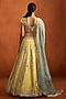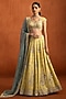 Featuring a yellow lehenga in viscose tissue base with zari, sequins and thread hand embellishments It is paired with an embroidered blouse and a net dupatta. Accentuate it with zircon or kundan jewellery, a sleek low bun and block heels for a complete ensemble, ideal for wedding, engagement or sangeet celebrations.