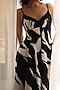 Featuring a black and white maxi dress in cotton base with a plunging neckline, thin straps, solid panel and abstract print. Style it with nude heels and delicate stud earrings for brunches, festive get-togethers, or daytime celebrations.