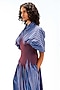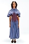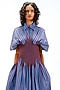 Featuring a blue and plum striped maxi dress in cotton base with a contrast corset effect and drop balloon sleeves. Style it with nude heels and delicate stud earrings for brunches, festive get-togethers, or daytime celebrations.