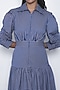 Featuring a blue and white checkered midi dress in viscose and polyester base with voluminous pleated sleeves and zipper detail. Style it with nude heels and delicate stud earrings for brunches, festive get-togethers, or daytime celebrations.