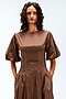 Featuring a brown midi dress in cotton base with bubble hem sleeves, contrast stitch and pleat dart detail. Style it with nude heels and delicate stud earrings for brunches, festive get-togethers, or daytime celebrations.