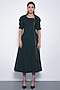 Featuring a forest green midi dress in cotton base with puff sleeves and contrast piping detail. Style it with pointed heels and minimal statement earrings for cocktail evenings, formal dinners, or festive gatherings.