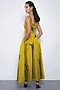 Featuring a mustard maxi dress in viscose and polyester base with floral stem motif and beads hand embroidery. Style it with pointed heels and minimal statement earrings for cocktail evenings, formal dinners, or festive gatherings.