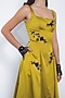 Mustard Viscose Floral Stem Embroidered Midi Dress