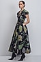 Featuring a black dress in chanderi and cotton silk base with a v-neckline, cap sleeves and floral print. Accentuate it with statement earrings and ankle length boots for art galleries, evening events or fashion events.