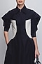 Featuring a black and white dress in cotton base with curved panel detail, sharp collar, front zipper detail and sculptural sleeves. Accentuate it with statement earrings, slicked-back hairs, leather handbag and ankle length boots for evening events, art galleries or fashion events.
