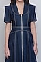 Featuring a blue dress in cotton khadi denim base with pleated sleeves, thread stitch and front zipper opening detail. Accentuate it with statement earrings, wavy hairs, leather handbag and elegant heels for formal dinners, casual office meeting or brunch dates.