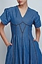 Featuring a denim blue dress in cotton base with a v-neckline, tulip sleeves and bias-cut strip detail. Accentuate it with hoop earrings, handbag and elegant heels for art galleries, formal dinners or brunch dates.