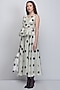 Featuring an off-white dress in cotton silk and chanderi base with voluminous peplum-style waist. Accentuate it with hoop earrings, handbag and elegant heels for art galleries, garden parties, formal dinners.