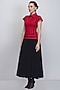 Featuring a red and black dress in cotton base with sharp collar, central zipper and lace detail. Accentuate it with statement earrings and ankle length boots for art galleries, evening events or fashion events.