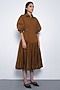 Featuring a tobacco structured midi dress in cotton base with sculpted shoulders and voluminous bubble hemline. Style it with nude heels and delicate stud earrings for brunches, festive get-togethers, or daytime celebrations.