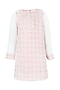 Featuring a baby pink A-line dress for girls in tweed base with a ruffled collar and white sleeves. Accentuate it with soft ballet flats or comfy sandals and a cute hairband or bow for a charming ensemble, ideal for family functions, birthdays or festive occasions.
