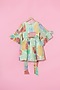Featuring an olive green dress for girls in georgette base with abstract print and embellishments. Style this designer dress with sandals and a cute headband for any festive occasion or ceremonial events.