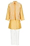 Yellow Silk Sequins Embroidered Jacket Set For Boys