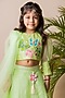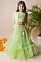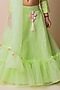 Featuring a green lehenga in organza base. It is paired with a matching dupion blouse and a dupatta.
