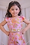 Featuring a lilac blouse for girls in pure muslin silk base with a round neckline, print, mirror work and cap sleeves. It is paired with palazzo pants. Accentuate it with matching hair clips and soft sandals for a stylish ensemble, ideal for wedding ceremonies or festive gatherings.