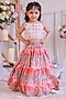 Featuring a multi-colored lehenga for girls in pure muslin silk base with an elasticated back. It is paired with a pink blouse having mirror work. Accentuate it with cute hairbands and comfy ballerinas for a stylish ensemble, ideal for wedding ceremonies or festive celebrations.