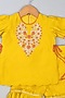 Featuring a mustard kurta for girls in silk base with knot embroidery. It is paired with sharara pants and an orange dupatta. Style it with sandals and hair accessories for festive occasions or sangeet ceremony.